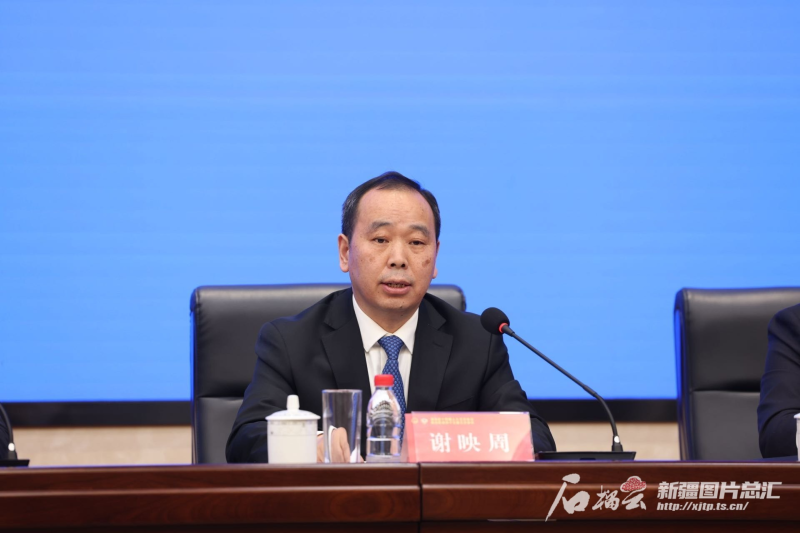 1月20日,2025新疆第三场旧事发布会举行。图为自治区人平易近旧事讲话人,自治区人平易近秘书长、办公厅从任周旭怯引见相关环境。石榴云/新疆日报记者 李瑞摄!